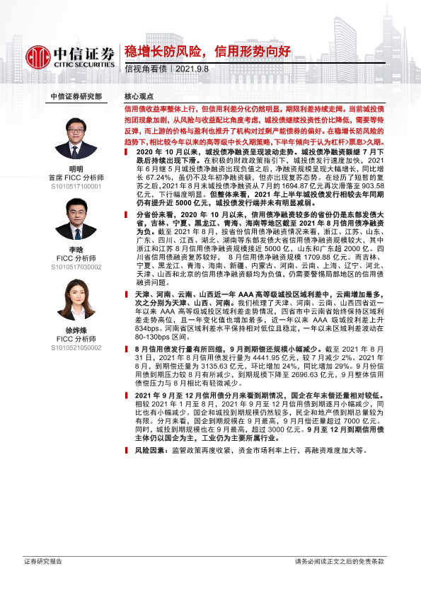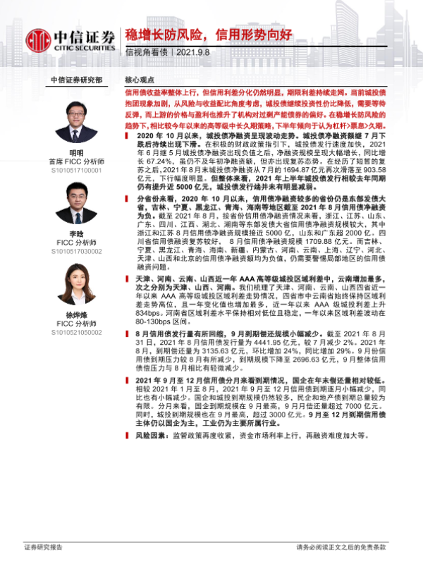 【中信证券】【20210908】信视角看债:稳增长防风险,信用形势向好-21页