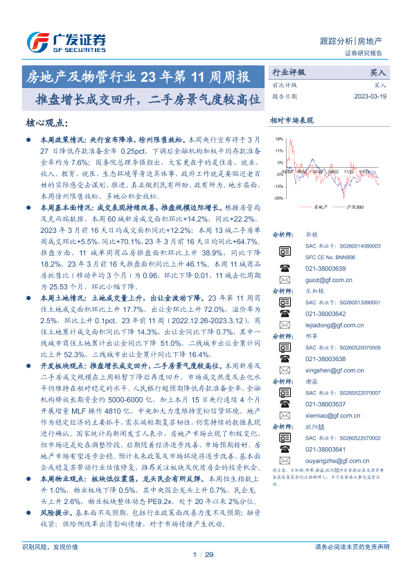 【广发证券】【20230319】房地产及物管行业23年第11周周报:推盘增长成交回升,二手房景气度较高位-29页
