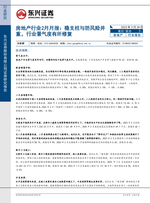 【东兴证券】【20230324】房地产行业2月月报:稳支柱与防风险并重,行业景气度有所修复-55页