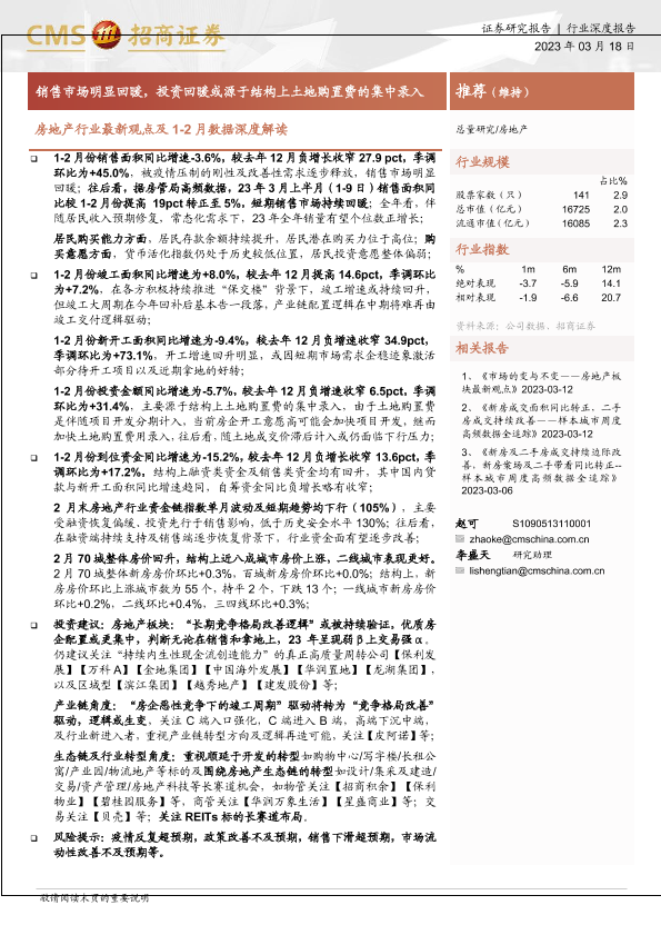 【海通证券】【20230318】房地产行业最新观点及1-2月数据深度解读:销售市场明显回暖,投资回暖或源于结构上土地购置费的集中录入-16页