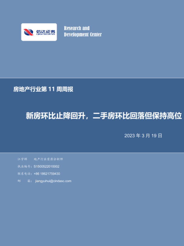 【信达证券】【20230319】房地产行业第11周周报:新房环比止降回升,二手房环比回落但保持高位-19页