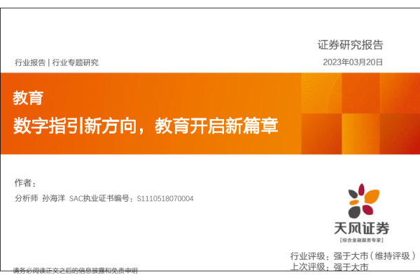 【天风证券】【20230320】教育行业专题研究:数字指引新方向,教育开启新篇章-26页