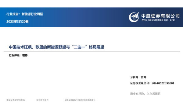 【中航证券】【20230320】新能源行业周报:中国技术狂飙,欧盟的新能源野望与“二选一”终局展望-18页