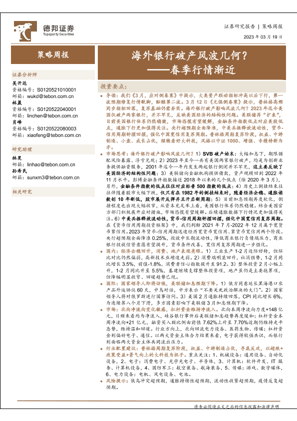 中国经济 春季行情 美联储政策 银行破产 证券分析