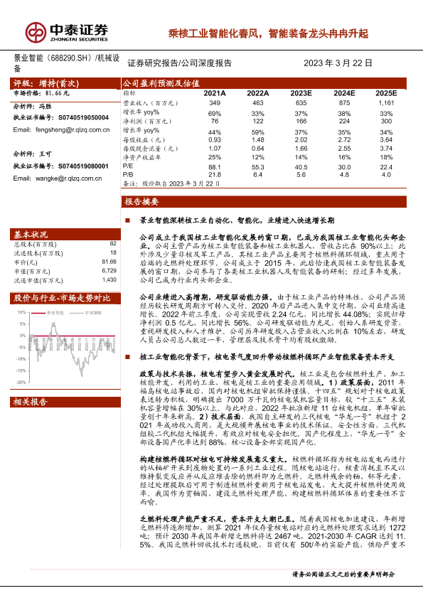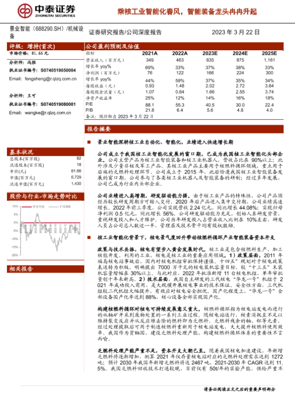 【中泰证券】【20230323】景业智能乘核工业智能化春风,智能装备龙头冉冉升起-29页