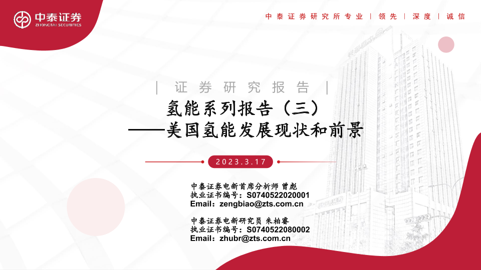 【中泰证券】【20230317】氢能系列报告(三):美国氢能发展现状和前景-24页