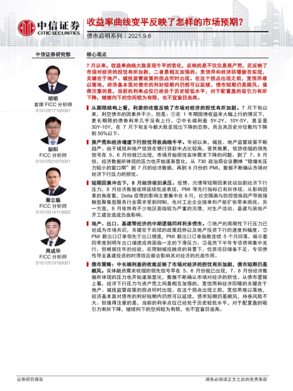 【中信证券】【20210906】债市启明系列:收益率曲线变平反映了怎样的市场预期?-28页