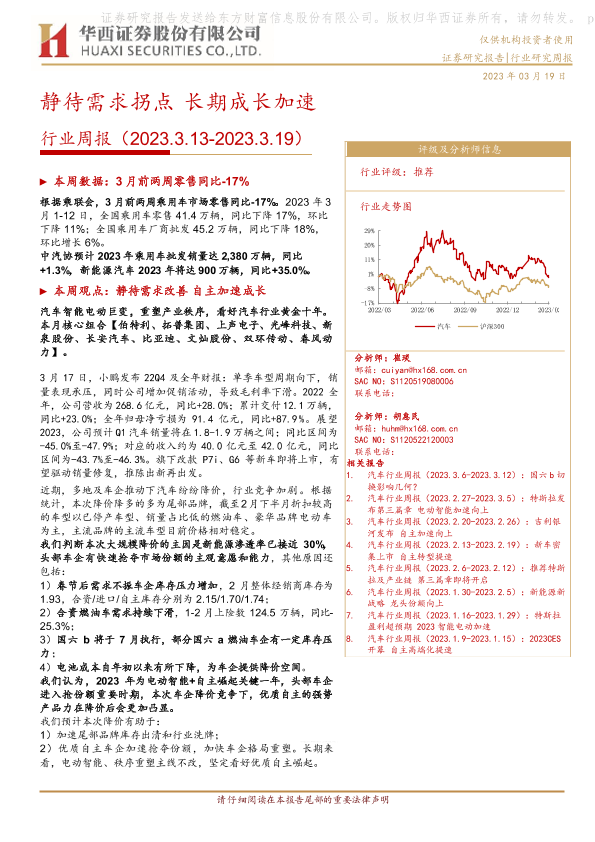 【华西证券】【20230319】汽车行业周报:静待需求拐点 长期成长加速-31页