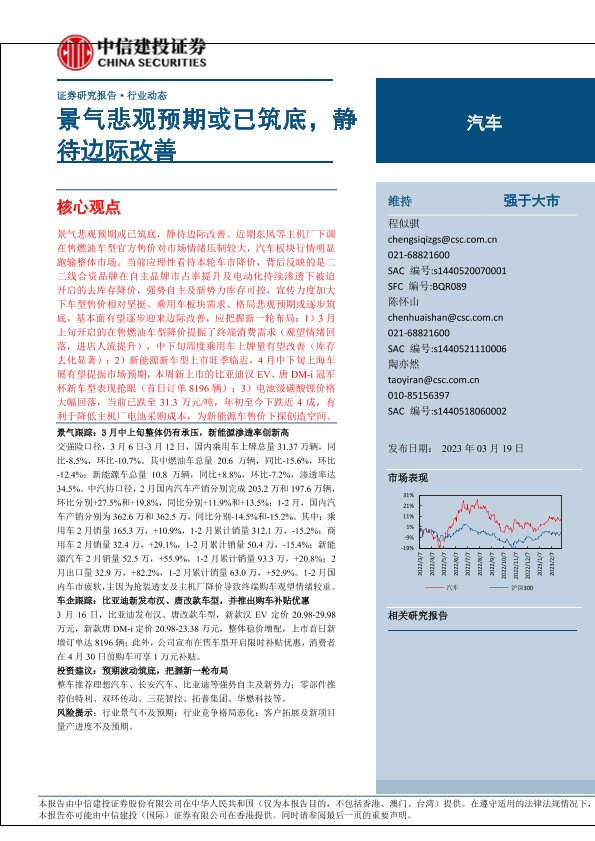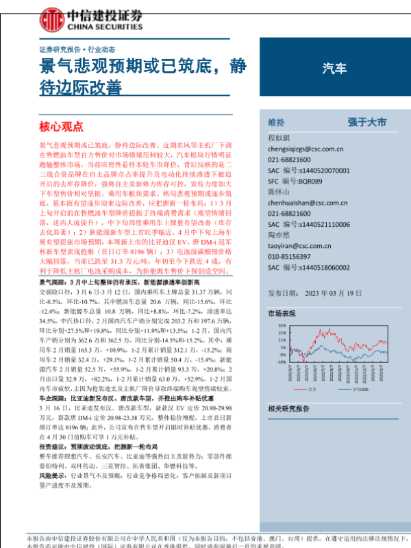 【中信建投证券】【20230319】汽车行业:景气悲观预期或已筑底,静待边际改善-15页