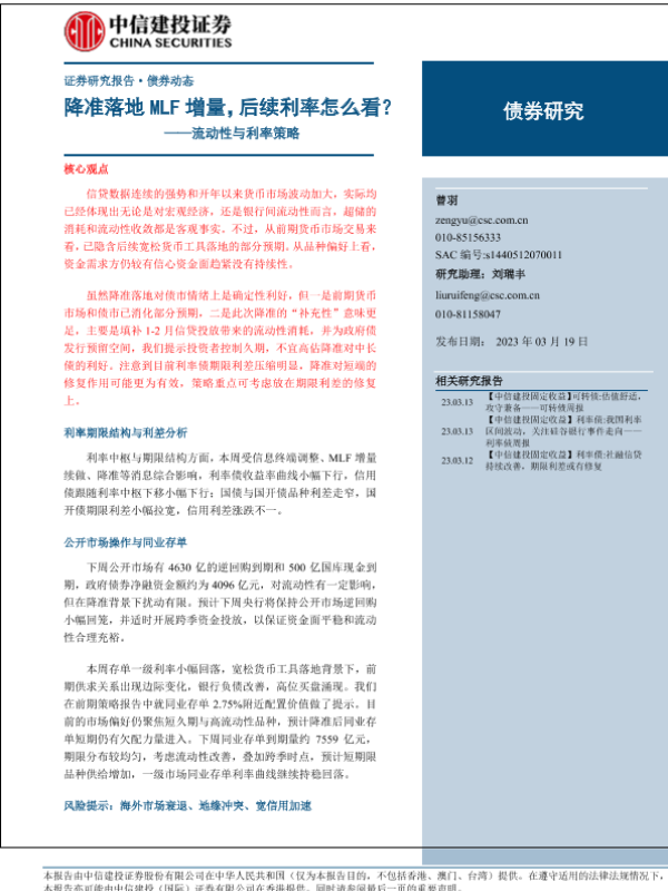 【中信建投证券】【20230319】流动性与利率策略:降准落地MLF增量,后续利率怎么看?-15页