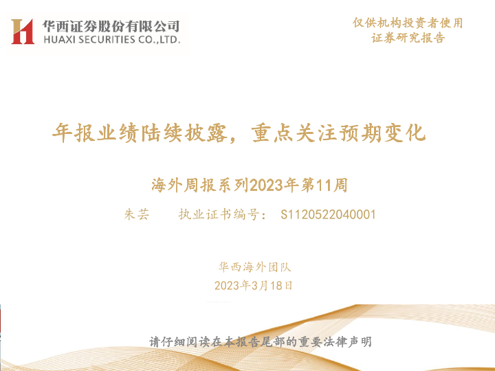 【华西证券】【20230318】海外周报系列2023年第11周:年报业绩陆续披露,重点关注预期变化-42页