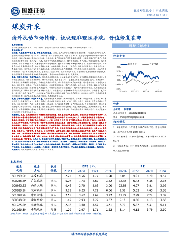 【国盛证券】【20230318】煤炭开采行业周报:海外扰动市场情绪,板块现非理性杀跌,价值修复在即-19页