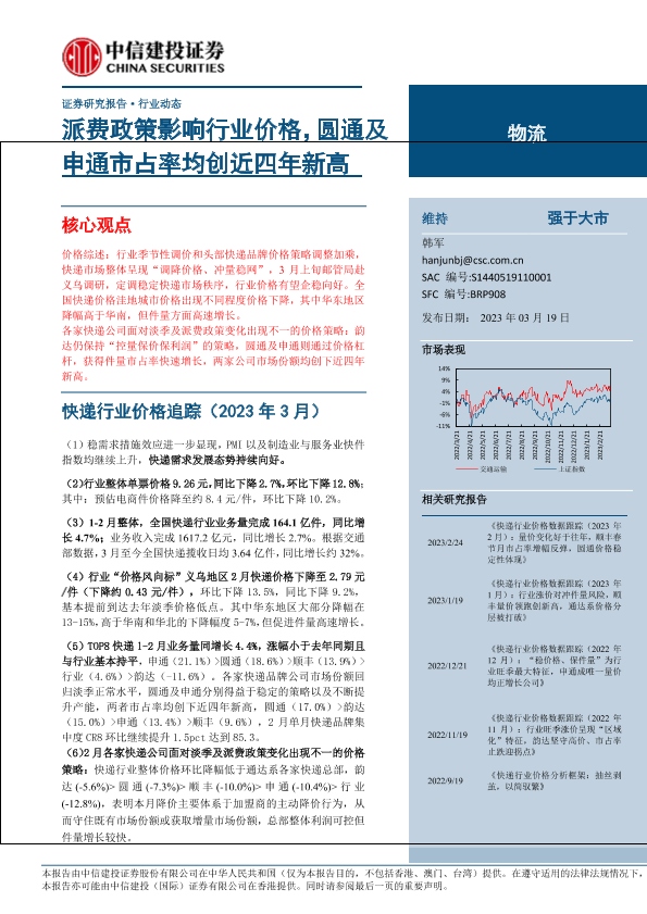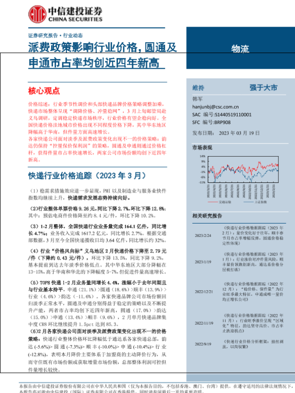 【中信建投证券】【20230319】物流行业动态:派费政策影响行业价格,圆通及申通市占率均创近四年新高-19页