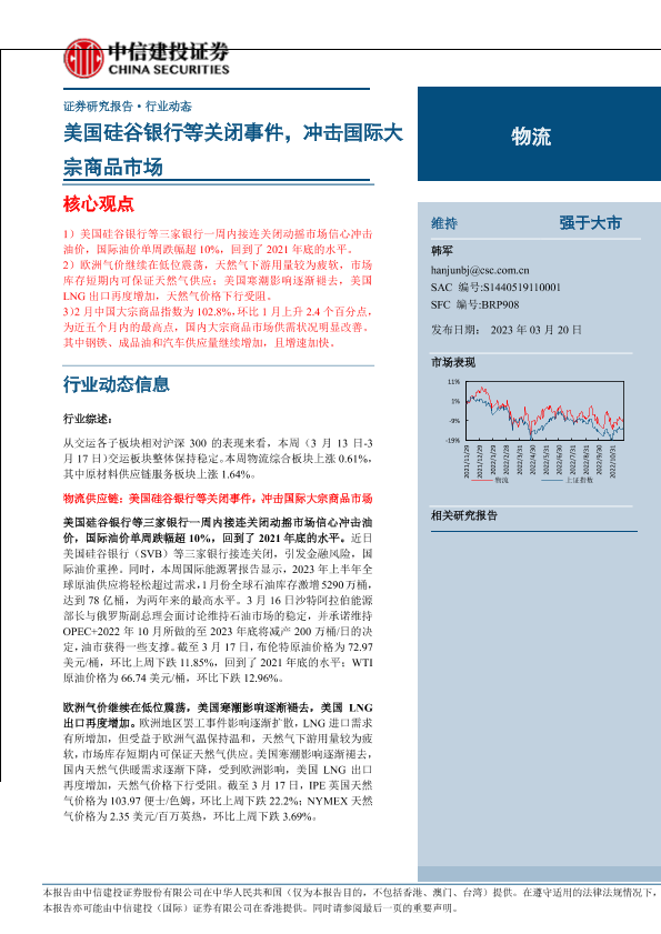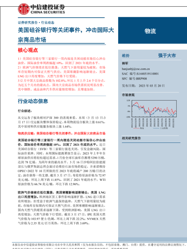 【中信建投证券】【20230320】物流行业动态:美国硅谷银行等关闭事件,冲击国际大宗商品市场-20页
