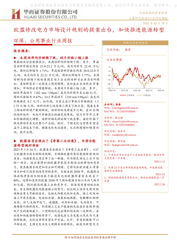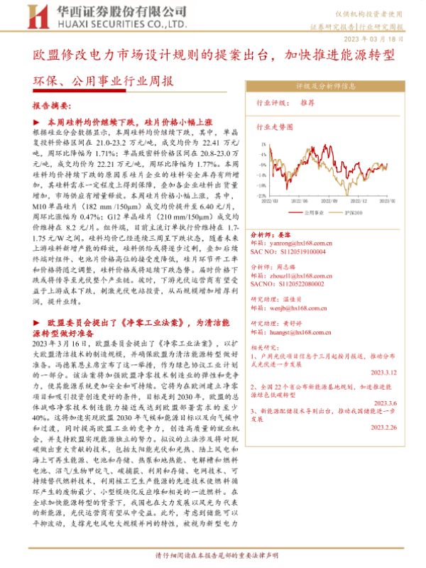 【华西证券】【20230318】环保、公用事业行业周报:欧盟修改电力市场设计规则的提案出台,加快推进能源转型-21页
