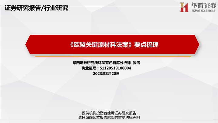 【华西证券】【20230320】环保有色行业研究报告:《欧盟关键原材料法案》要点梳理-28页