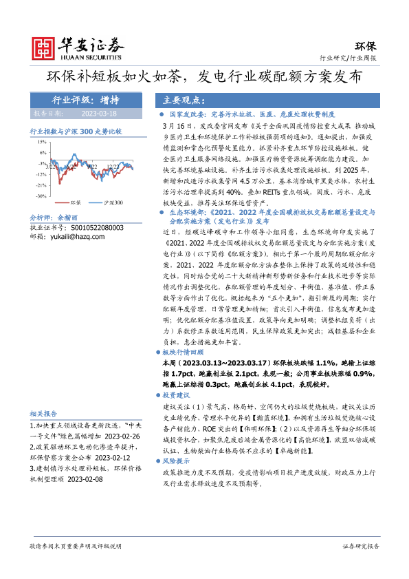 【华安证券】【20230318】环保行业周报:环保补短板如火如荼,发电行业碳配额方案发布-15页