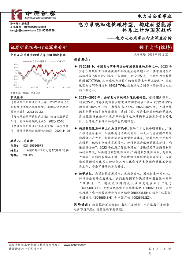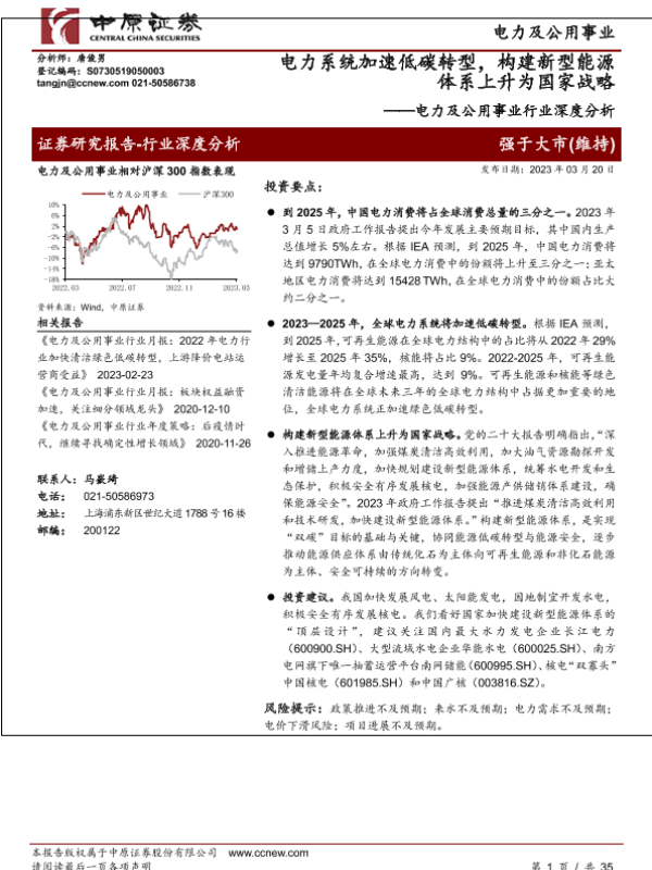 【中原证券】【20230320】电力及公用事业行业深度分析:电力系统加速低碳转型,构建新型能源体系上升为国家战略-35页