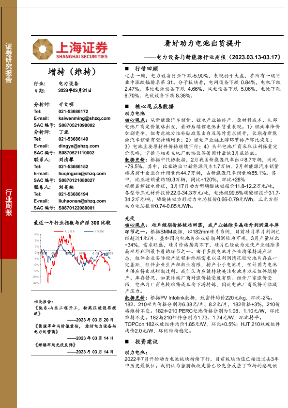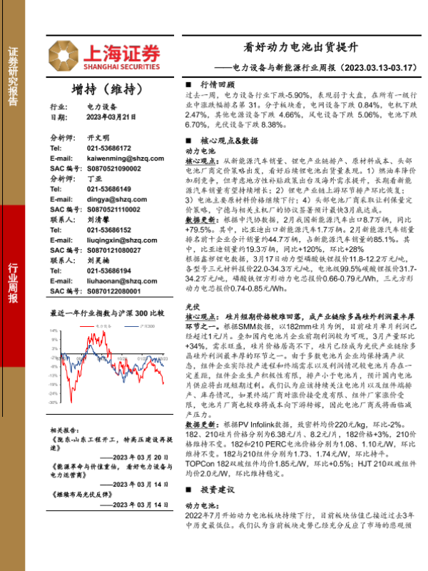 【上海证券】【20230321】电力设备与新能源行业周报:看好动力电池出货提升-23页