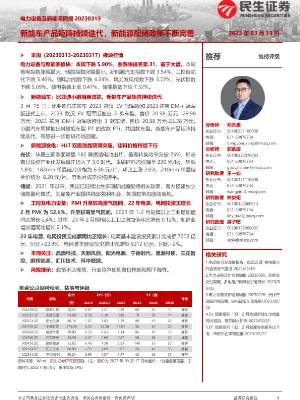 【民生证券】【20230319】电力设备及新能源周报:新能车产品矩阵持续迭代,新能源配储政策不断完善-28页