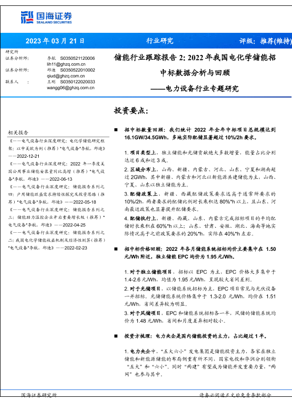 【国海证券】【20230321】储能行业跟踪报告2:2022年我国电化学储能招中标数据分析与回顾-35页
