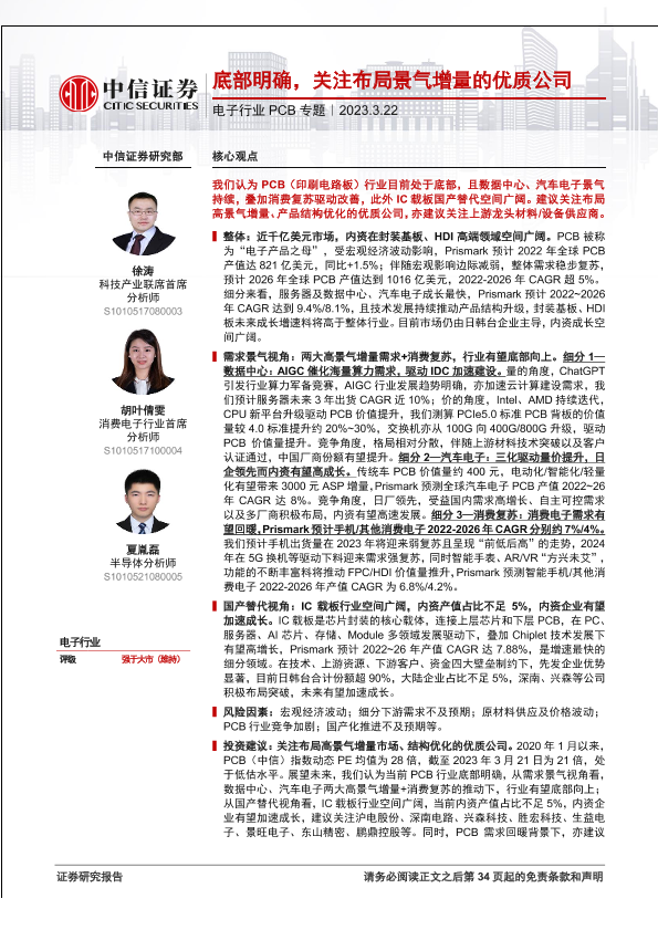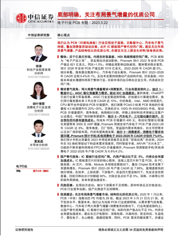 【中信证券】【20230322】电子行业PCB专题:底部明确,关注布局景气增量的优质公司-35页
