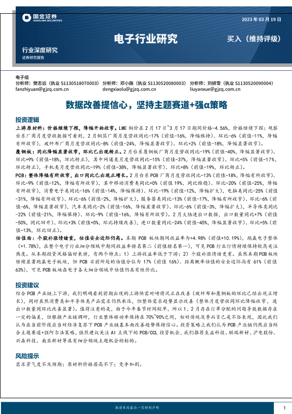 【国金证券】【20230319】电子行业深度研究:数据改善提信心,坚持主题赛道+强a策略-22页