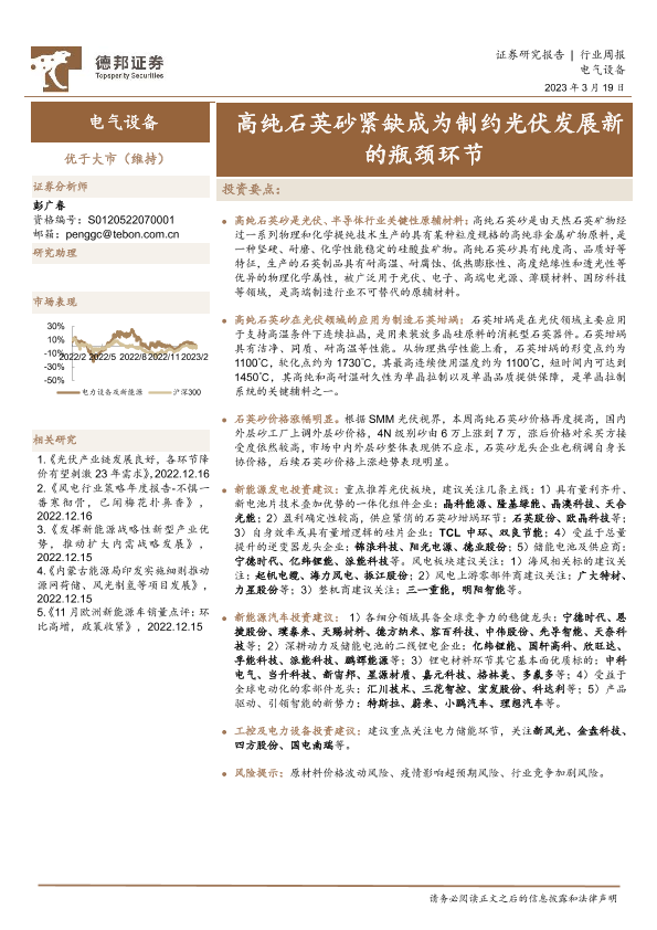 【德邦证券】【20230319】电气设备行业周报:高纯石英砂紧缺成为制约光伏发展新的瓶颈环节-18页