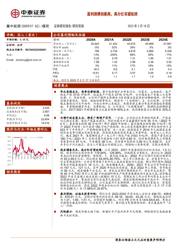 产能分析 煤炭行业 盈利预测 财务指标 高分红