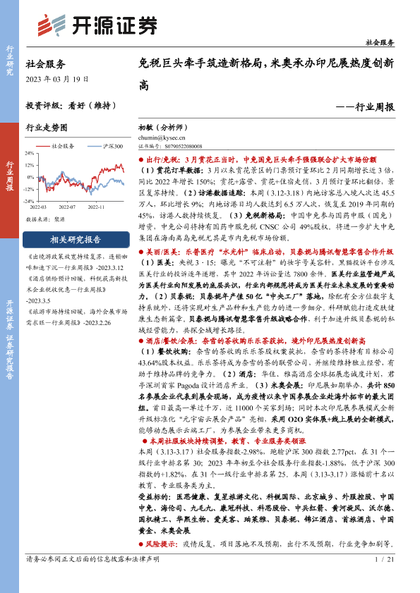 【开源证券】【20230319】社会服务行业周报:免税巨头牵手筑造新格局,米奥承办印尼展热度创新高-21页
