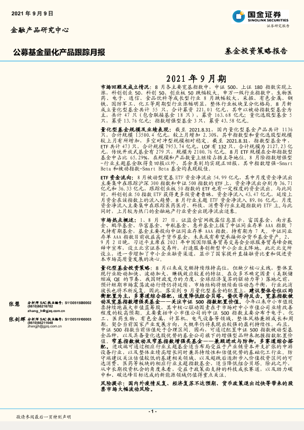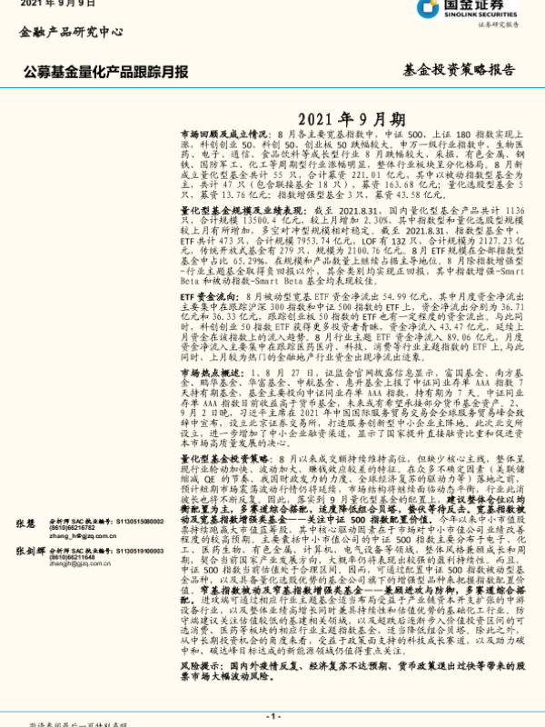 【国金证券】【20210909】公募基金量化产品跟踪月报:基金投资策略报告-21页