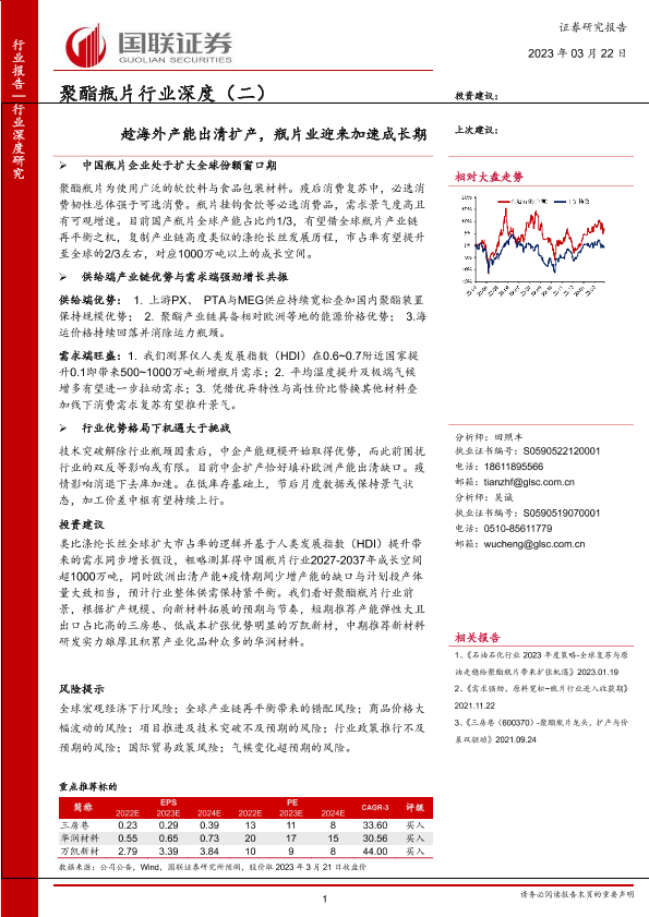 【国联证券】【20230322】聚酯瓶片行业深度(二):趁海外产能出清扩产,瓶片业迎来加速成长期-32页