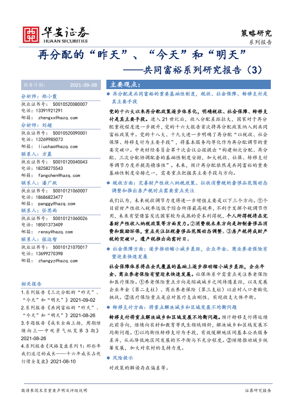 【华安证券】【20210908】共同富裕系列研究报告(3):再分配的“昨天”、“今天”和“明天”-17页