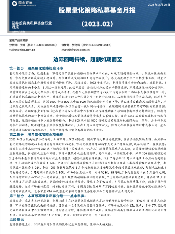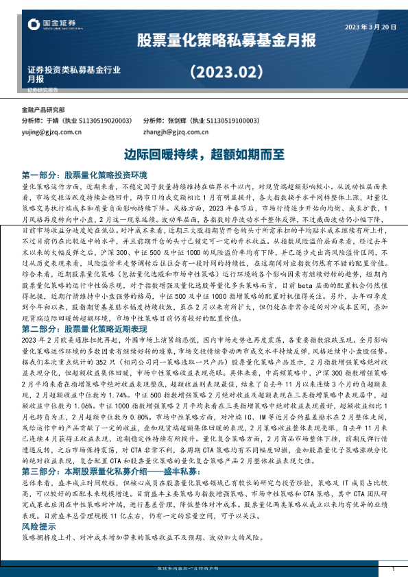 【国金证券】【20230320】股票量化策略私募基金月报(2023.02):边际回暖持续,超额如期而至-19页