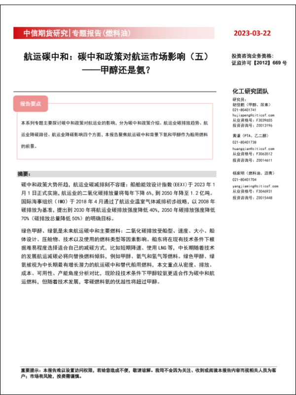 【中信期货】【20230322】航运碳中和:碳中和政策对航运市场影响(五),甲醇还是氨?-34页
