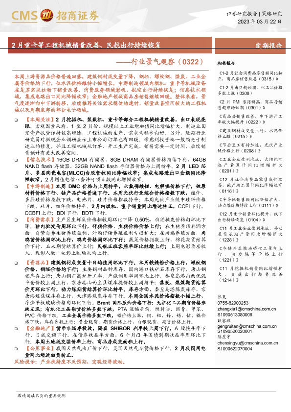 【海通证券】【20230322】行业景气观察:2月重卡等工程机械销量改善,民航出行持续恢复-27页