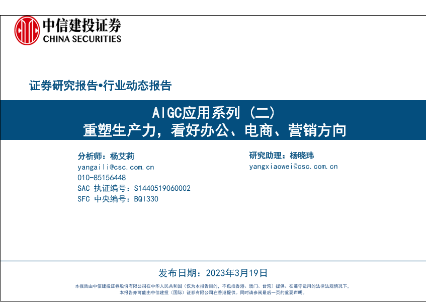 【中信建投证券】【20230319】计算机行业AIGC应用系列(二):重塑生产力,看好办公、电商、营销方向-47页