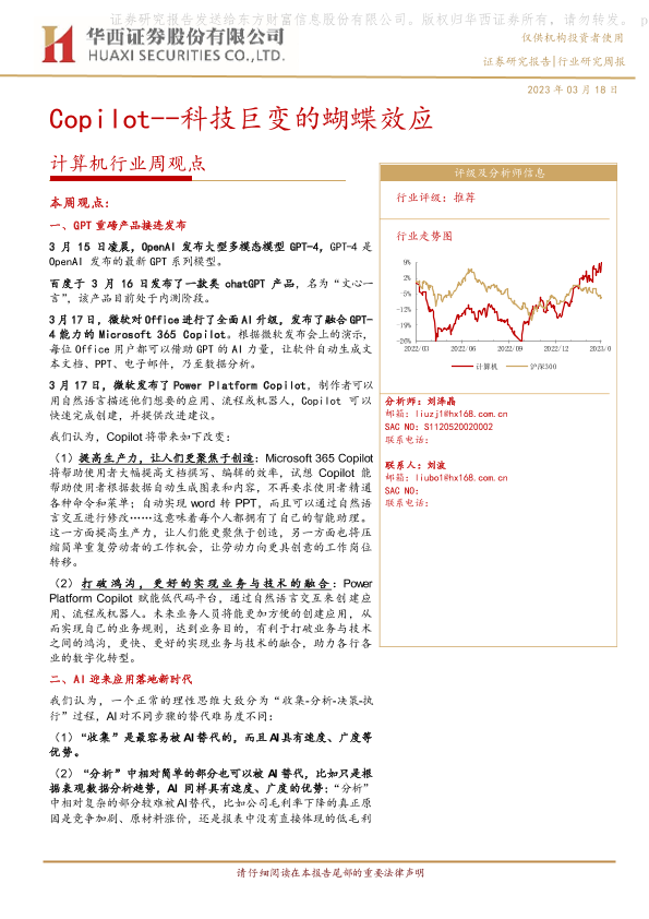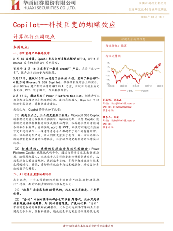 【华西证券】【20230318】计算机行业周观点:Copilot--科技巨变的蝴蝶效应-34页