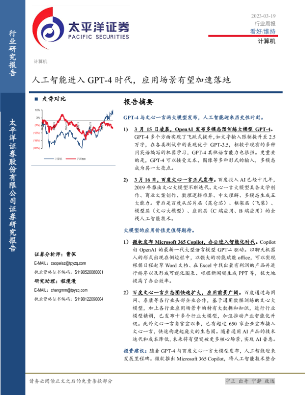 【太平洋证券】【20230319】计算机行业周报:人工智能进入GPT-4时代,应用场景有望加速落地-22页