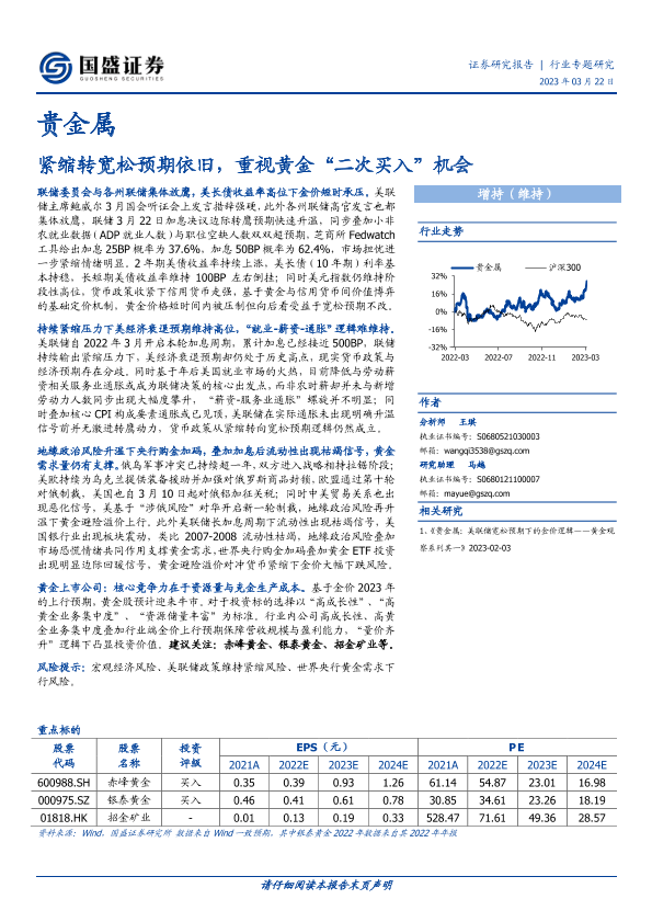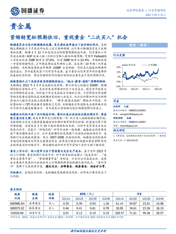 【国盛证券】【20230322】贵金属行业专题研究:紧缩转宽松预期依旧,重视黄金“二次买入”机会-19页