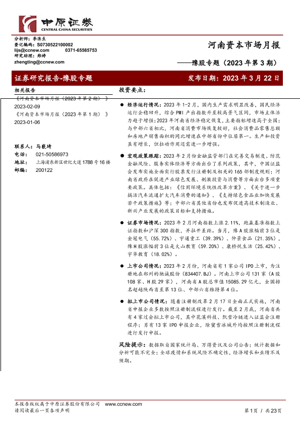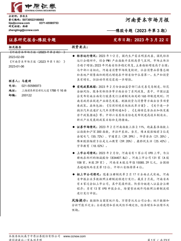【中原证券】【20230322】豫股专题(2023年第3期):河南资本市场月报-23页