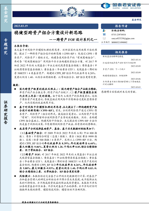 【国泰君安证券】【20230319】稳健型跨资产组合方案设计新思路——跨资产FOF设计系列之一-24页