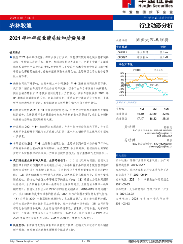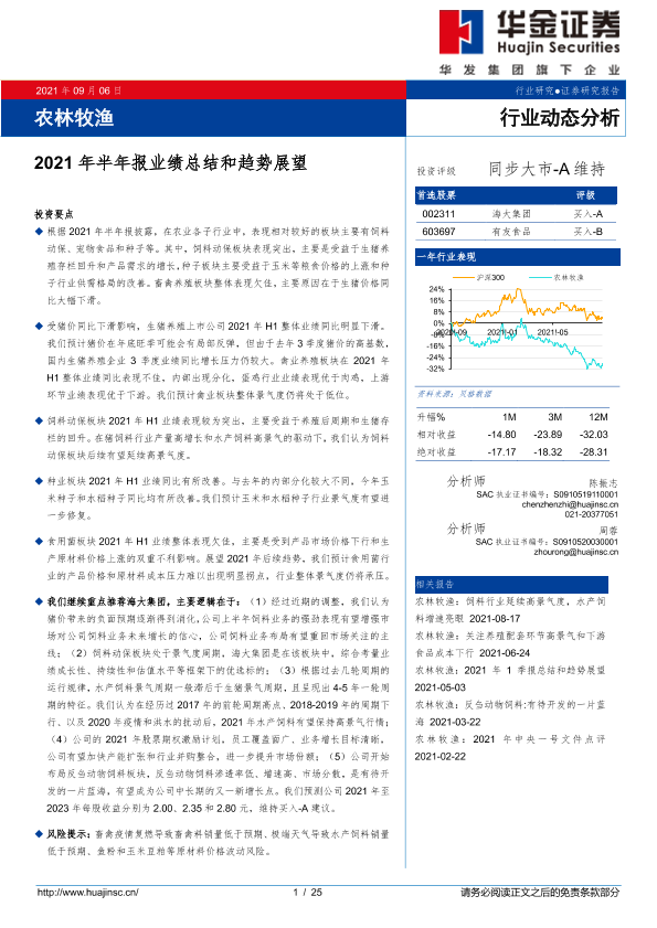 【华金证券】【20210906】农林牧渔行业:2021年半年报业绩总结和趋势展望-25页