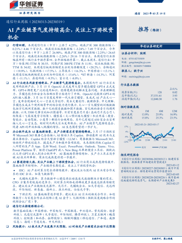 【华创证券】【20230319】通信行业周报:AI产业链景气度持续高企,关注上下游投资机会-16页