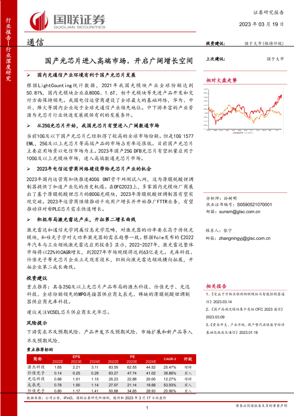 【国联证券】【20230319】通信行业:国产光芯片进入高端市场,开启广阔增长空间-39页
