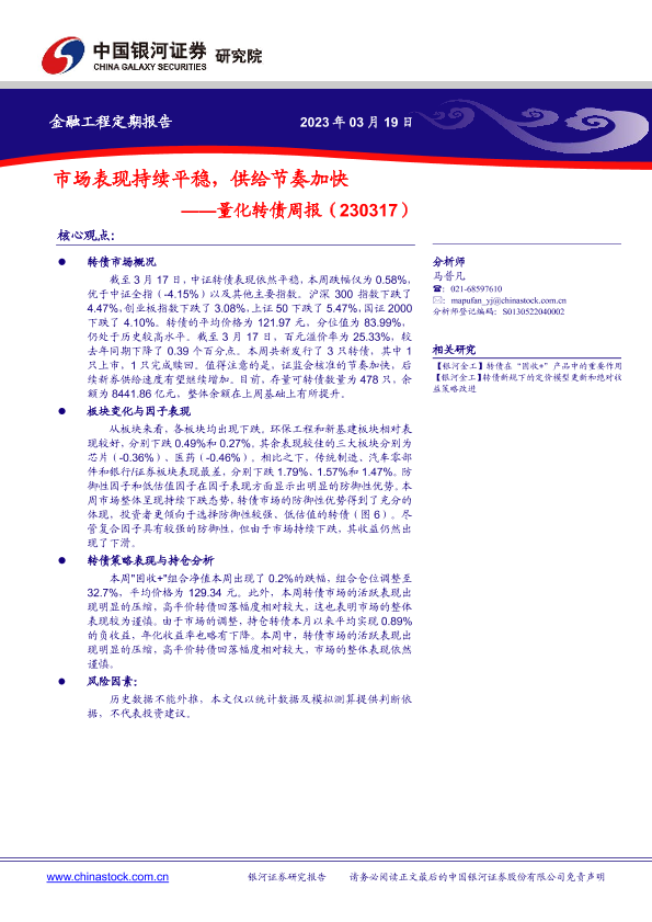 【银河证券】【20230319】量化转债周报:市场表现持续平稳,供给节奏加快-16页