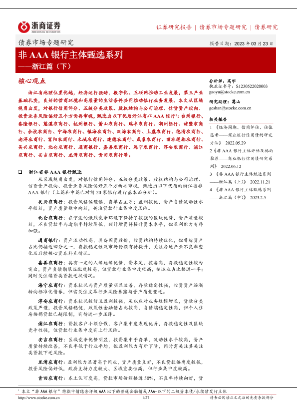 【浙商证券】【20230323】非AAA银行主体甄选系列:浙江篇(下)-27页