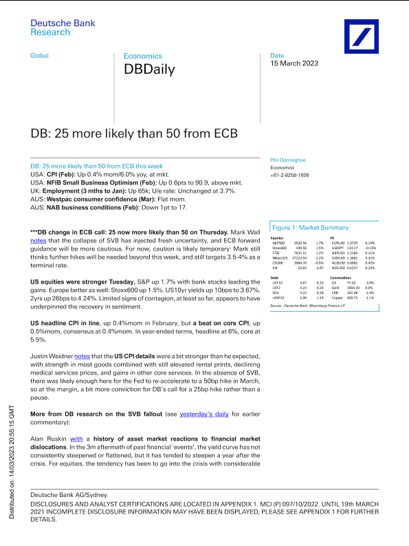 【Deutsche Bank】【20230315】Deutsche Bank-DBDaily DB 25 more likely than 50 from ECB-13页