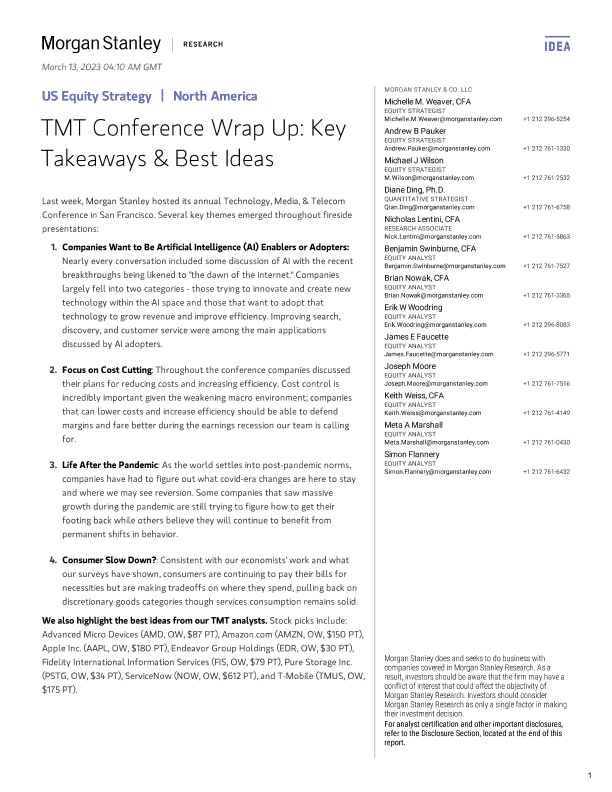 【Morgan Stanley】【20230313】Morgan Stanley-US Equity Strategy TMT Conference Wrap Up Key Takeaways-28页