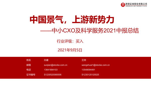 【浙商证券】【20210905】医药生物行业:中小CXO及科学服务2021中报总结,中国景气,上游新势力-33页